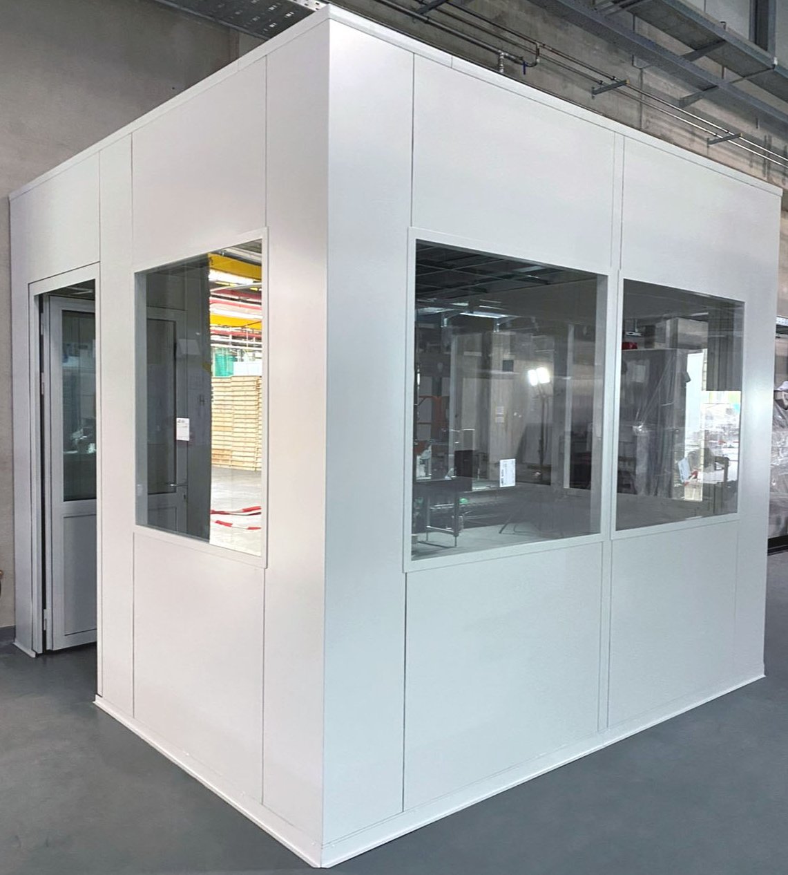 In großen Hallen, etwa Lägern, bieten rundum abgeschlossene Sozialräume Schutz gegen Lärm, Kälte oder Hitze und Stäube. Dafür sorgen unsere Elemente für die Klimatisierung sowie die Zu- und Abluftschalldämpfung.