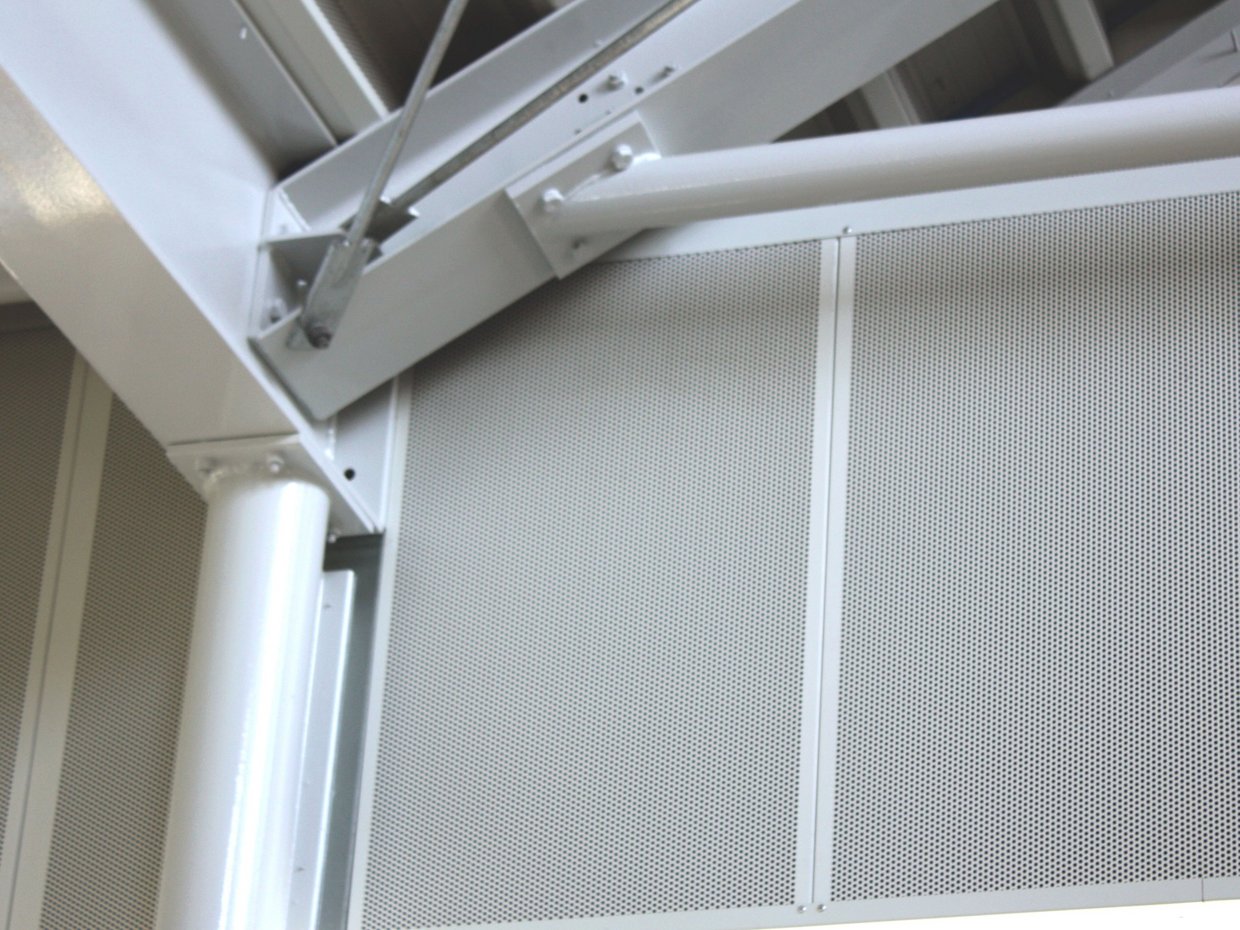 Die schallabsorbierenden Wand- und Deckenverkleidungsmodule bestehen aus feuerverzinkten oder beschichteten REDUNOISE® Stahlkassetten, die mit Absorberplatten aus Mineralwolle gefüllt sind. Ein schalldurchlässiges Faservlies dient als Rieselschutz und schützt dabei die Oberfläche. Mineralwolle hat einen geringeren Strömungswiderstand als Schaumstoff und ist daher ein besserer Absorber. Werden die Module mit Abstand zur Wand montiert, können die Absorptionsgrade je nach Frequenzbereich noch verbessert werden. Alle Teile sind nicht brennbar gem. DIN 4102-A2.